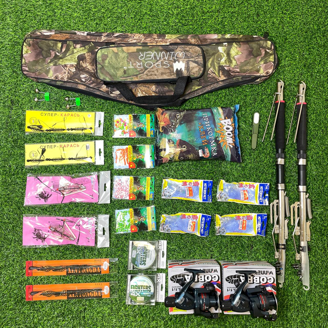 Цей комплект розроблено для риболовлі з максимальним комфортом. Основа набору — дві самопідсікаючі вудки, механізм яких автоматично реагує на клювання, виконуючи підсічку. Це дозволяє не пропускати рибу, навіть якщо ви відволіклися. Набір укомплектований усім необхідним: котушками, міцною волосінню, різноманітними готовими оснастками на коропа та карася, а також усіма потрібними аксесуарами та чохлом.